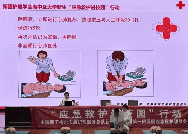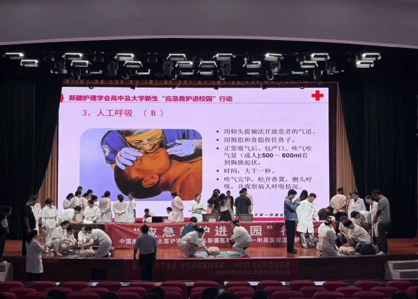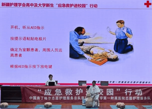9月9日下午,我校医院联合党委学生工作部,邀请新疆医科大学第一附属医院心血管病中心、神内科护士长、副主任护师吴红艳带领专业的护理团队为我校全体辅导员、校医院工作人员、宿舍楼栋长、后勤人员及学生志愿者普及应急救护知识,提升应对突发事件的自救互救能力,筑牢校园安全防线。