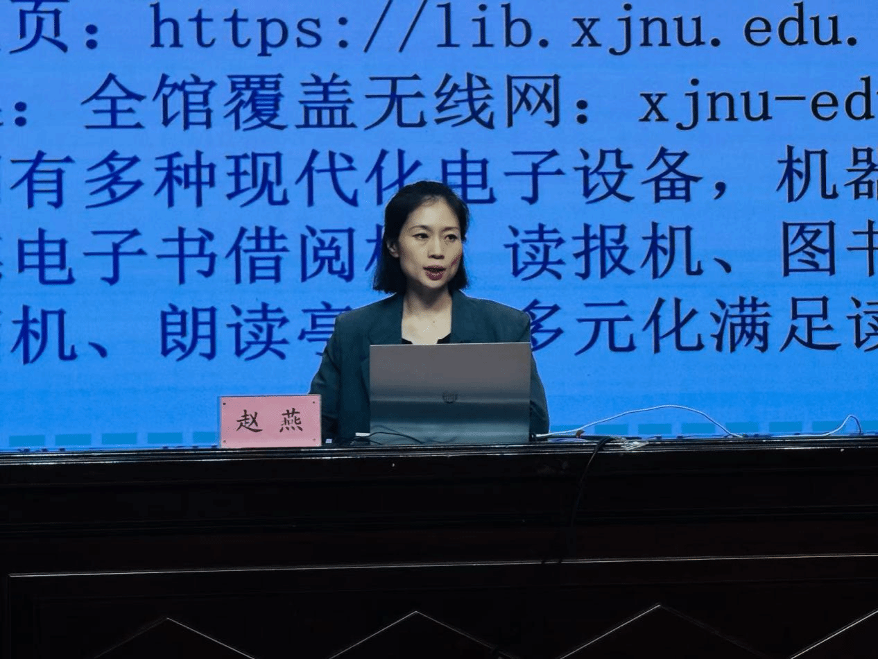 图书馆副馆长赵燕副研究馆员为新生做入馆培训
